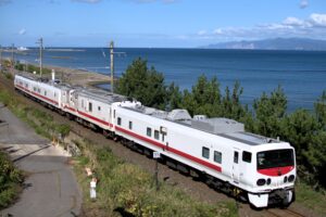 そして新中小国信で折り返してきた試9340Dですが検測パンタは上昇、TDM検測は未実施でした。 背後の木が伸びたおかげで線路と海の間の道路を完全に隠してくれて以前より魅力度アップです! しかも海の青さに加え陸奥湾の奥の下北半島もくっきりと見えており最高の条件の中でキヤ検撮影できました。 八戸も大湊も微妙な結果に終わった今回のキヤ検ですがこの1コマ撮れただけで大満足。