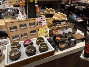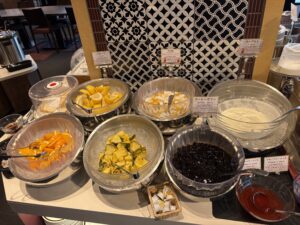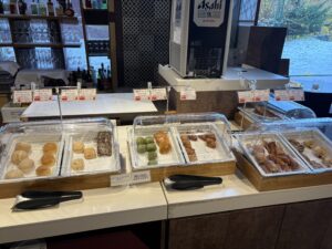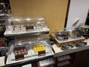 こちらもビュッフェ形式ですがそれほど食べたいものがないことに加え、昨日の夜、食べ過ぎたためあまり食べられませんでした。