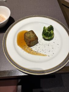 今回は肉料理をチョイスしましたが、つぶ貝の海鮮アリオリ焼の方が美味しそうに見えたのは気のせいか…