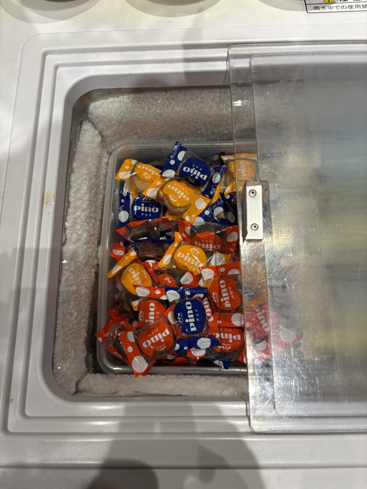 ビュッフェ形式だとソフトクリームマシーンが置いてあることが多いですが、こちらはアイスでしかも個包装のピノ! ピノって何気に良い値段するのでここぞとばかりに爆食い…汗