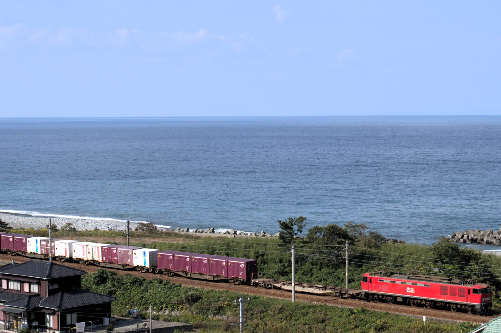 撮影地につくと程なく3093レが青510牽引でやってきました。 撮影した時点で車番がわかりませんでしたが、後々調べるとどうやら513号機だったようです。 編成の一部に影が落ちてますが貨物はおまけなので気にしない気にしない…