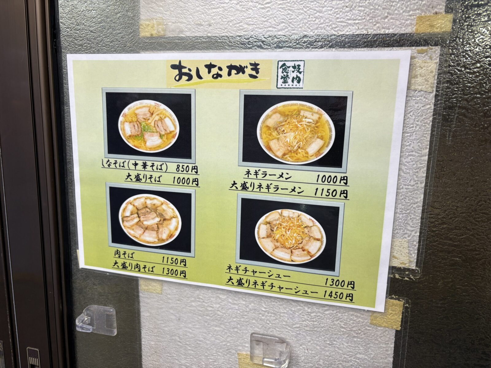 メニューはこの4種類のラーメンでそれぞれ普通盛りと大盛があるのみ