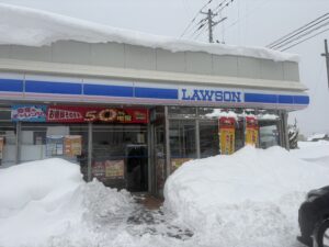 途中、時間があるので南米沢駅近くのローソンに立ち寄りましたが大雪ですごいことになっていました。 米沢市内は除雪が追いついてなく道路も狭くなっており市内は大渋滞です。