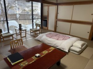 布団は既に敷かれている状態でした。 コロナ禍以降はこのように布団が最初から敷かれた状態の宿が多くなった印象です。