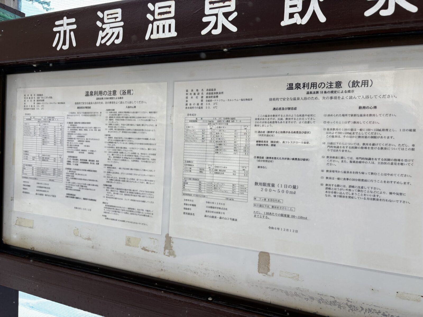 飲泉所の温泉分析書ですが成分は宿の物とほぼ同じです。