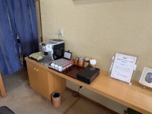 ロビーには無料のコーヒーもおいてあり部屋に持って行ってもOKだそう。